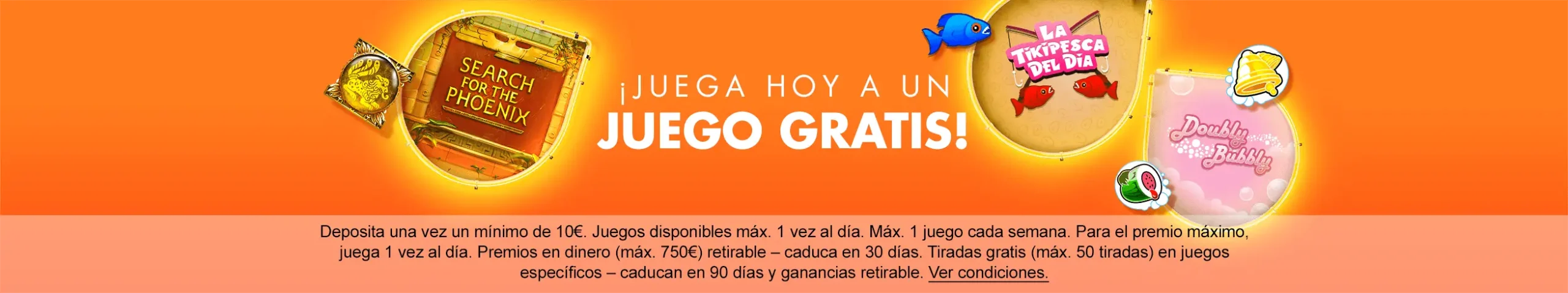 | Juegos Botemania gratis | Consisten en buscar símbolos premiados pulsando casillas en distintos tableros temáticos. No requieres apostar para jugar. Solo debes tener un depósito de Botemania 10 euros gratis en tu cuenta. | Hasta 750 € y tiradas gratis |