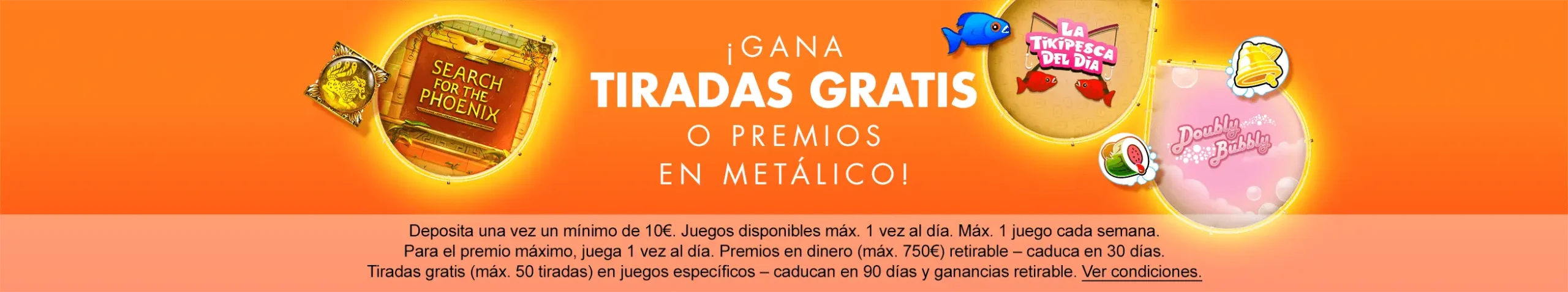 | Ruleta de oportunidades | Apuesta mínima y juegos que varían cada día. | Premios de 40, 25 y 20 €. |